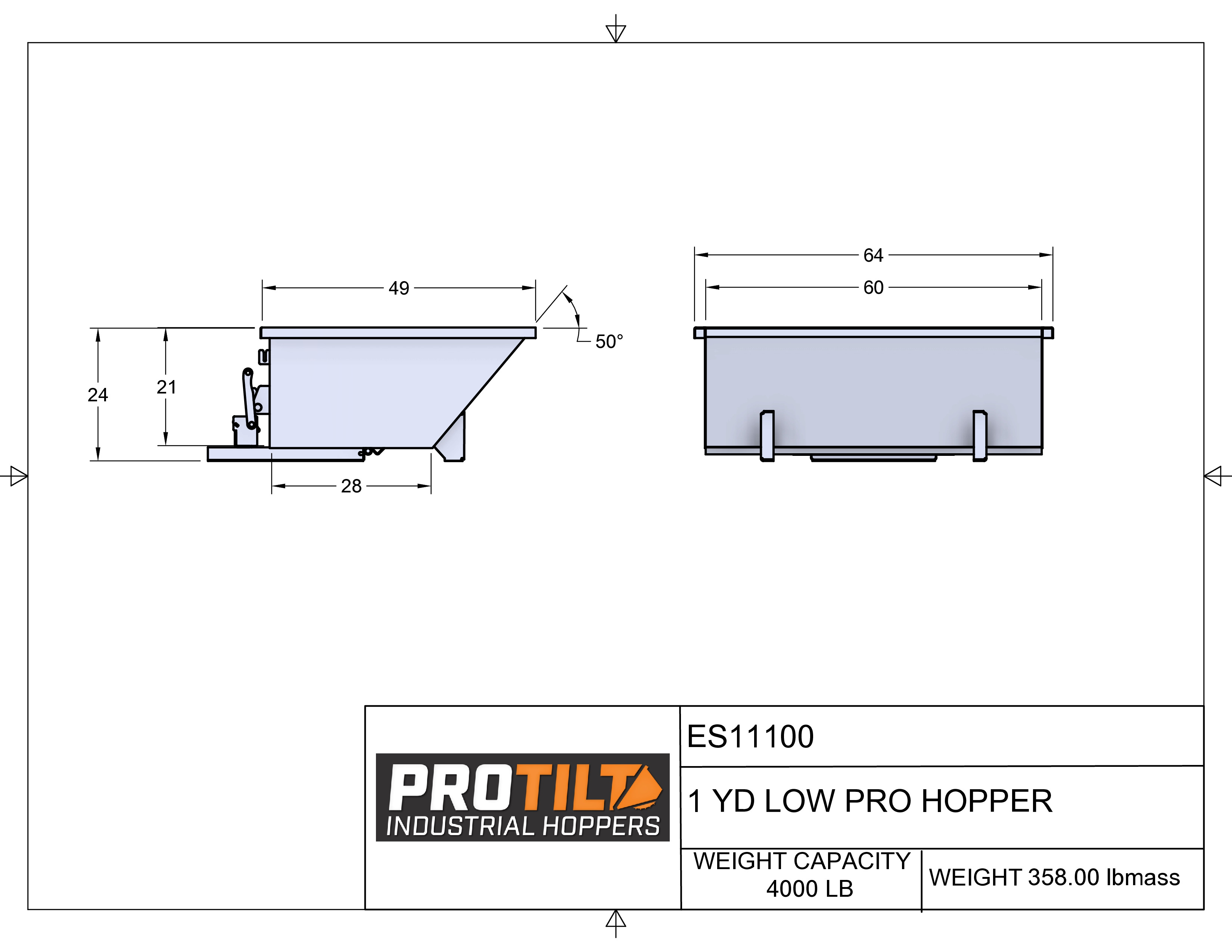 1 Yard ProTilt Low Profile Self-Dumping Hopper