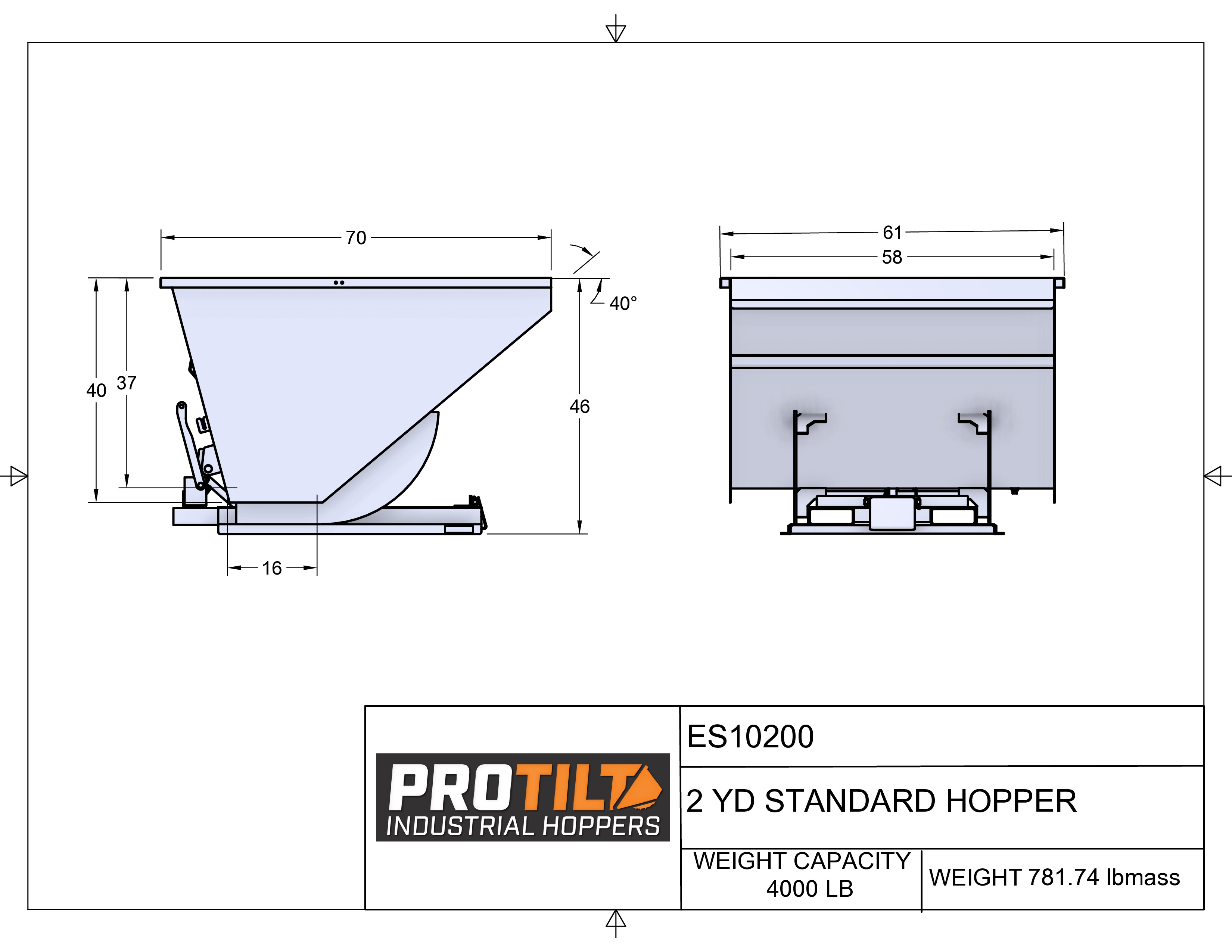 Built from all American steel, PROTILT Self-Dumping Hoppers are designed for handling scrap, waste, and bulk materials in demanding environments. Each hopper is reinforced with precision-welded joints and a durable powder-coated finish for long-lasting protection. These hoppers are designed with a self-dumping mechanism that automatically returns to the upright position after dumping, utilizing a forward-tipping action that ensures complete discharge of materials while maintaining operator safety. The self-dumping mechanism provides smooth, controlled unloading with the option of manual or bump-release operation. Ideal for factories, fabrication shops, and material yards where reliable material flow is critical. Every Hopper comes standard with a drain plug for easy drainage.